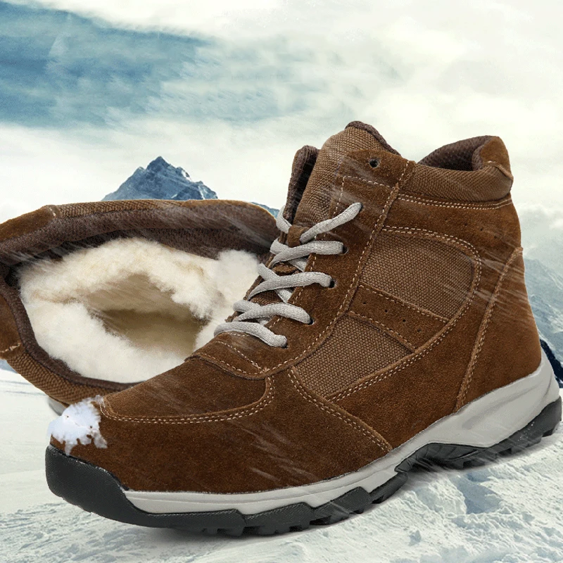 Special Offer Męskie buty 2019 zimowe oryginalne skórzane buty ciepłe grube wełniane męskie kostki zimowe antypoślizgowe buty zimowe dla 40 stopni Discount 40% Today!