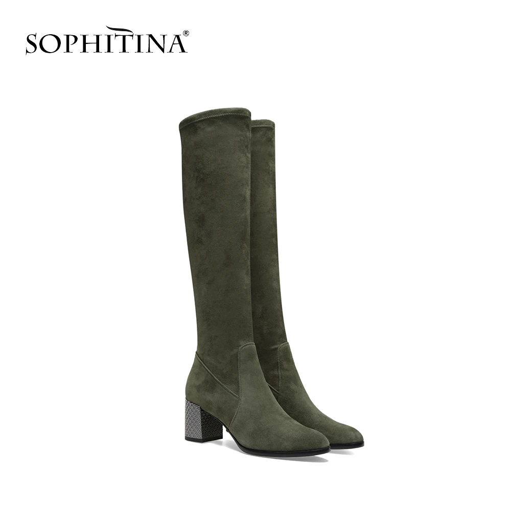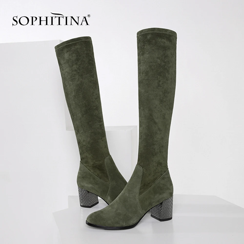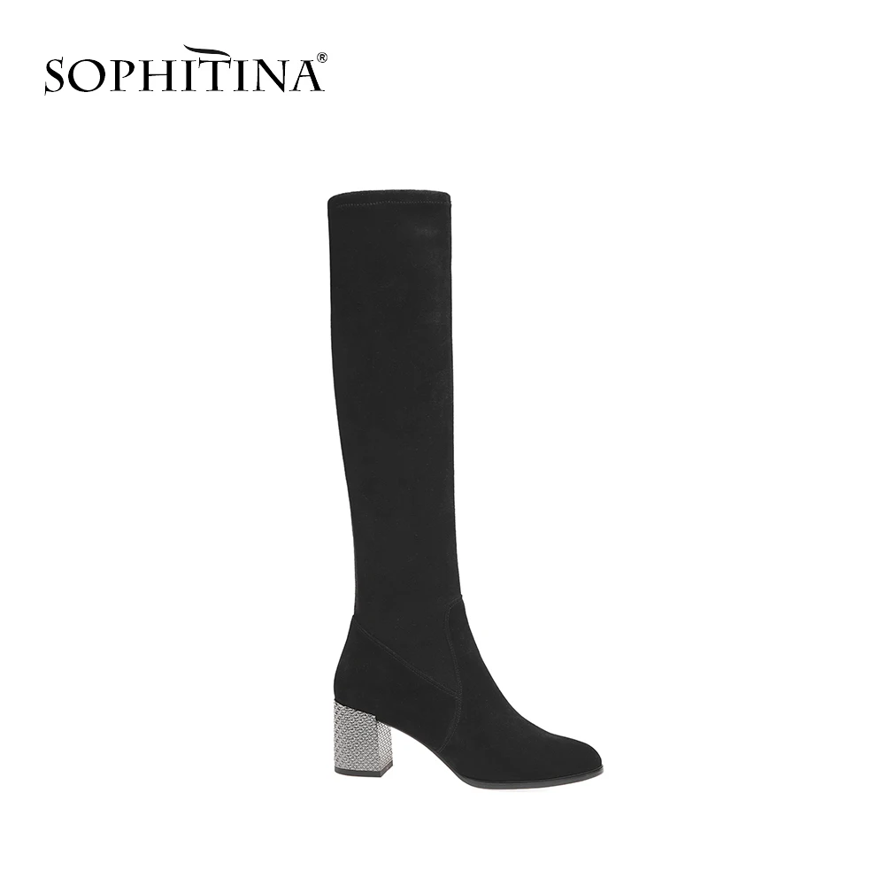 Special Offer SOPHITINA Over The Knee kobieta buty wysokiej jakości ręcznie okrągłe Toe kwadratowy obcas Boot 2019 stałe eleganckie Party buty biurowe B71 Discount 45% Today!