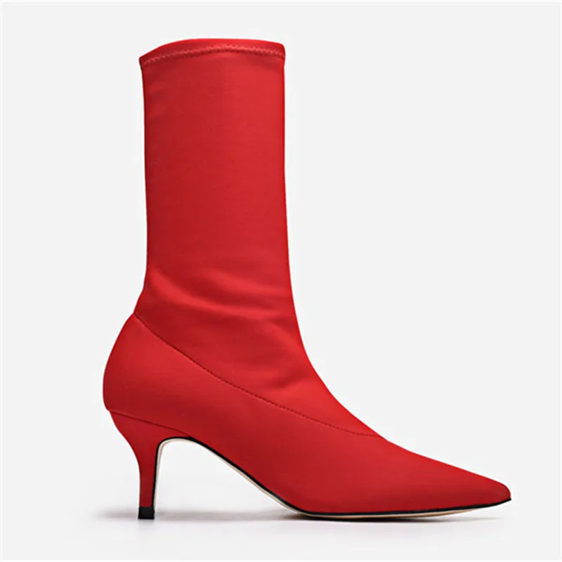 Special Offer Jady Rose czarne kobiety skarpety buty rozciągliwa tkanina Slip On 7CM wysokie obcasy szpiczasty nosek botki damskie czółenka szpilki damskie buty Discount 42% Today!