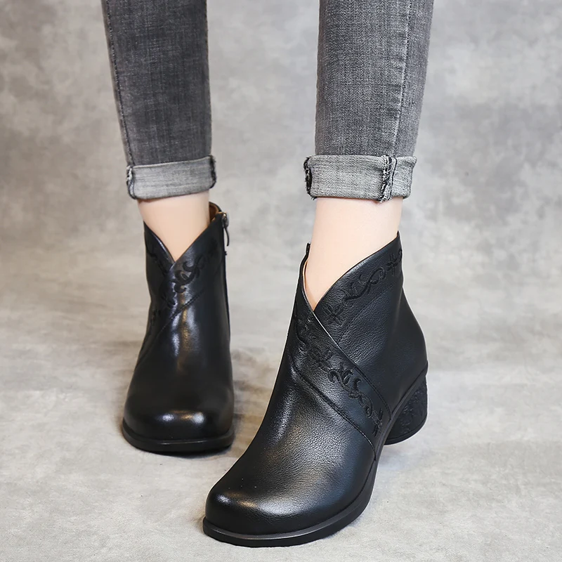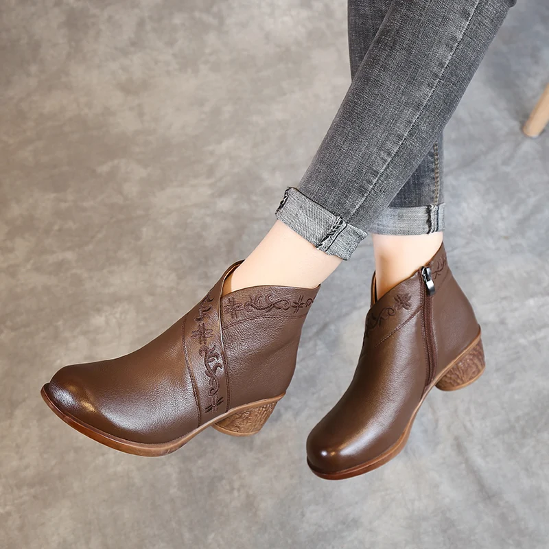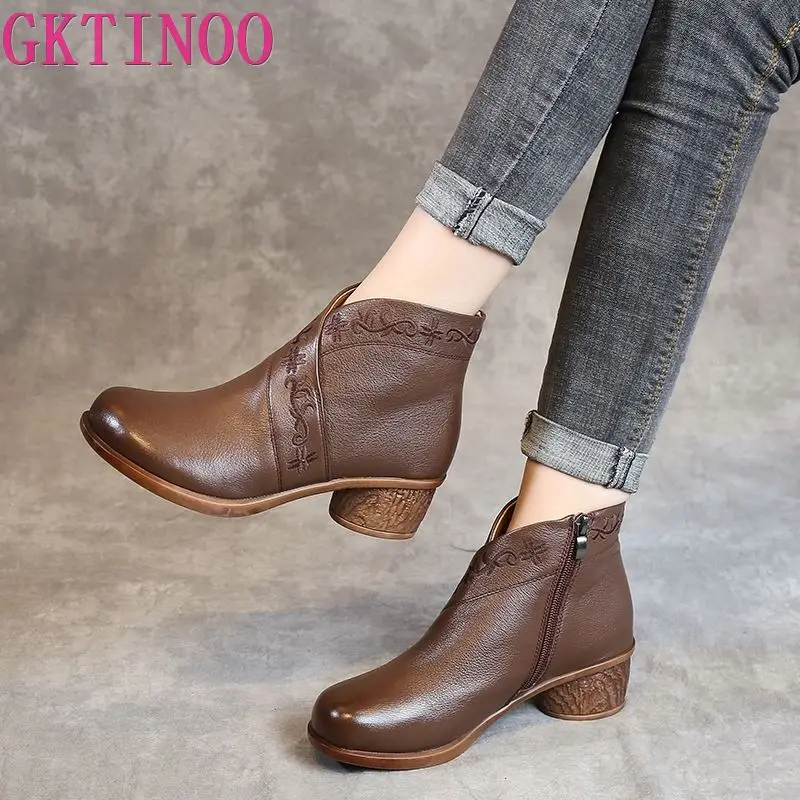 Special Offer GKTINOO wiosna damskie jesienne botki prawdziwej skóry grube obcasy botki dla kobiet buty Retro Handmade zamek krótkie buty Discount 50% Today!