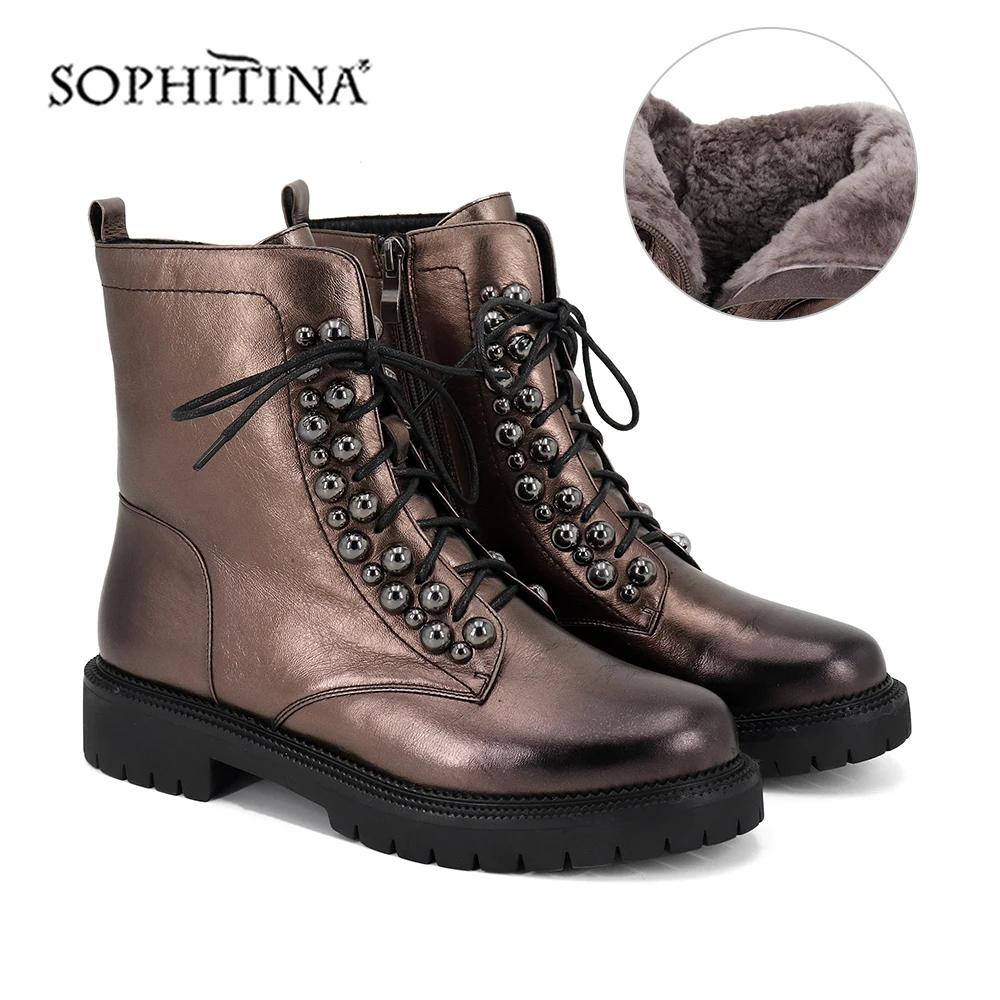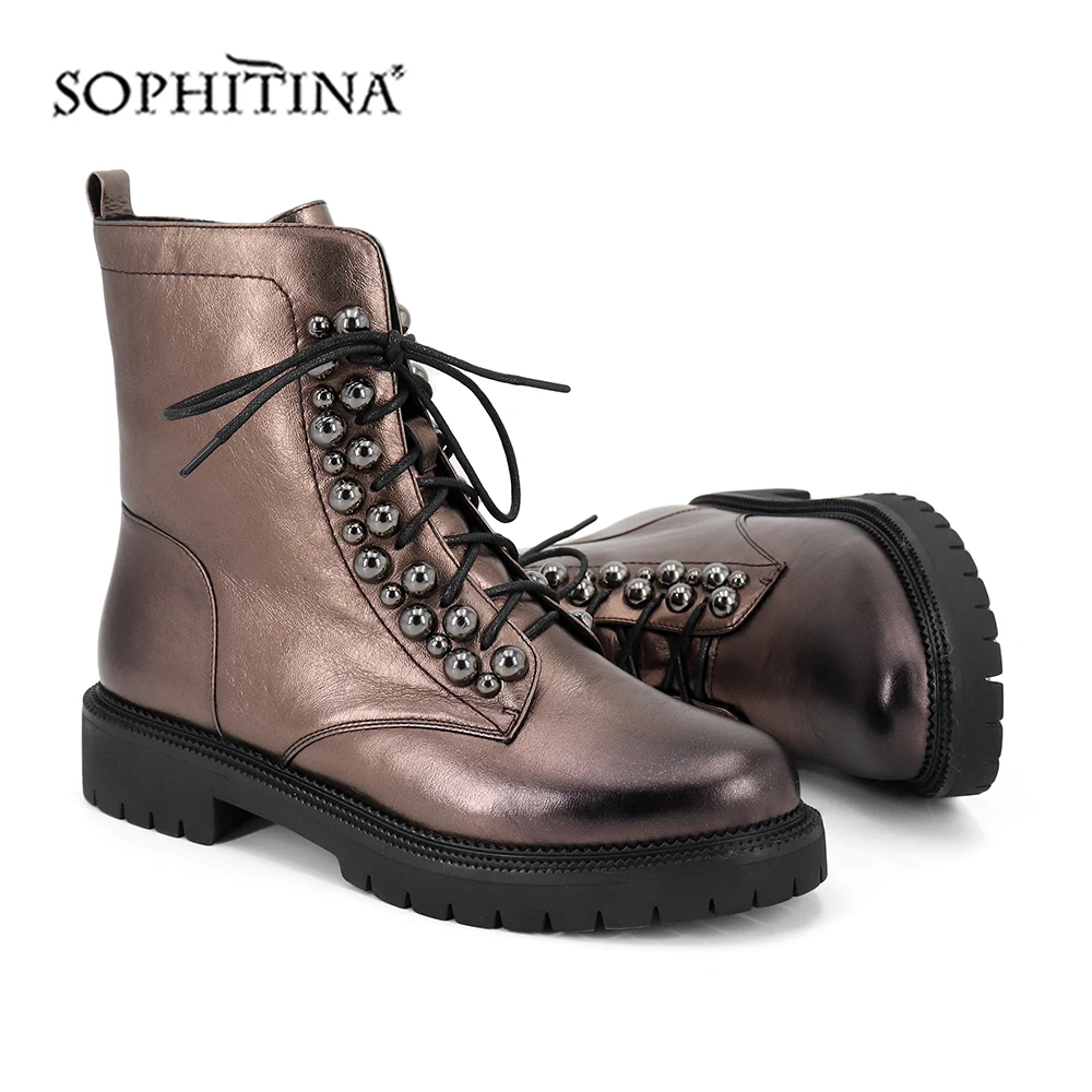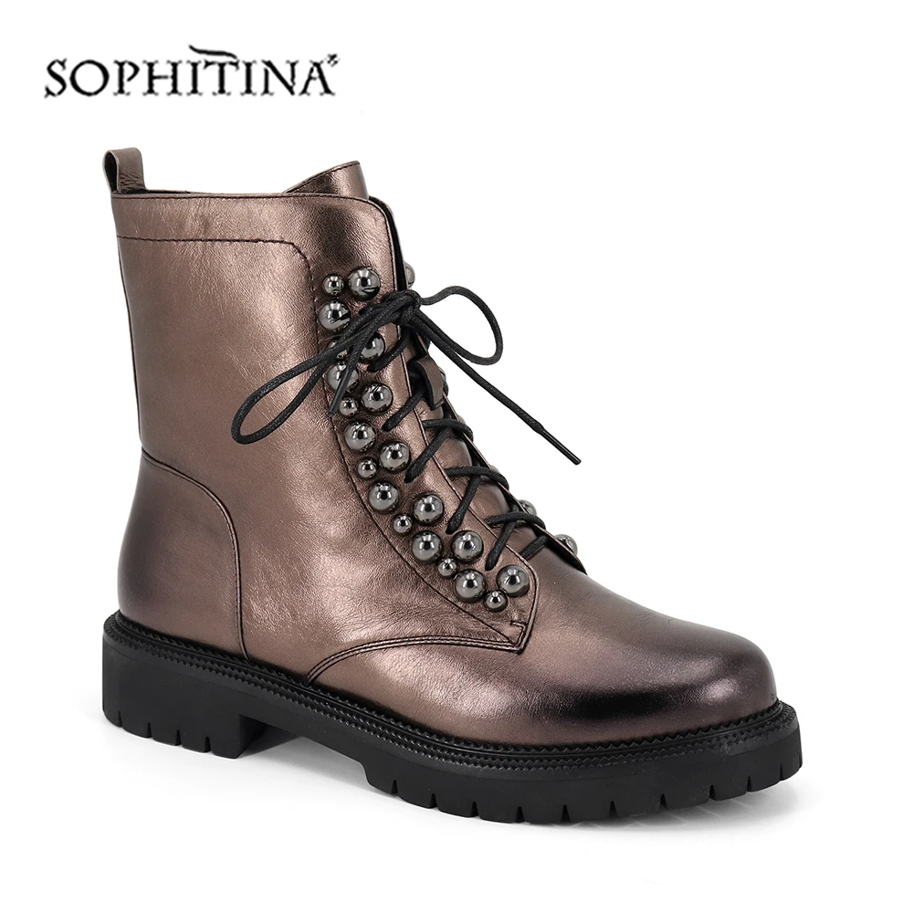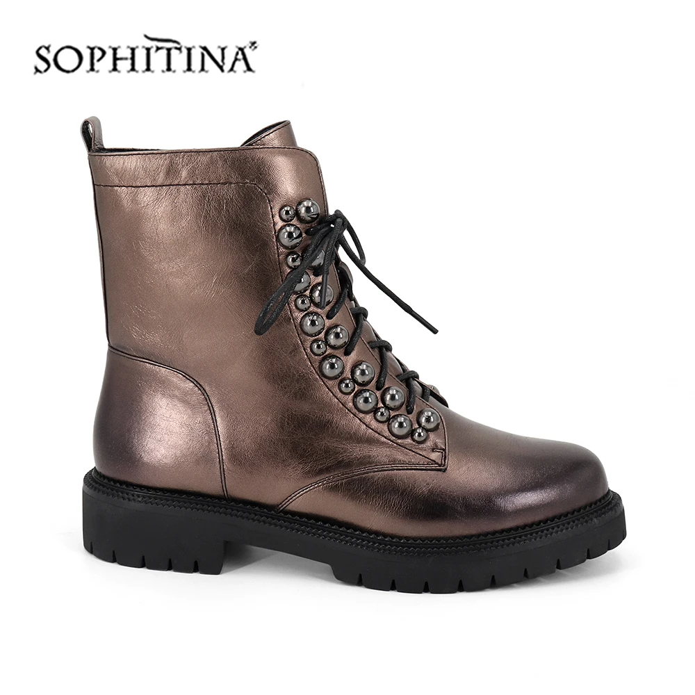 Special Offer SOPHITINA Fashion specjalna konstrukcja nowe buty wysokiej jakości prawdziwej skóry zamek wygodne buty na kwadratowym obcasie botki MC492 Discount 50% Today!