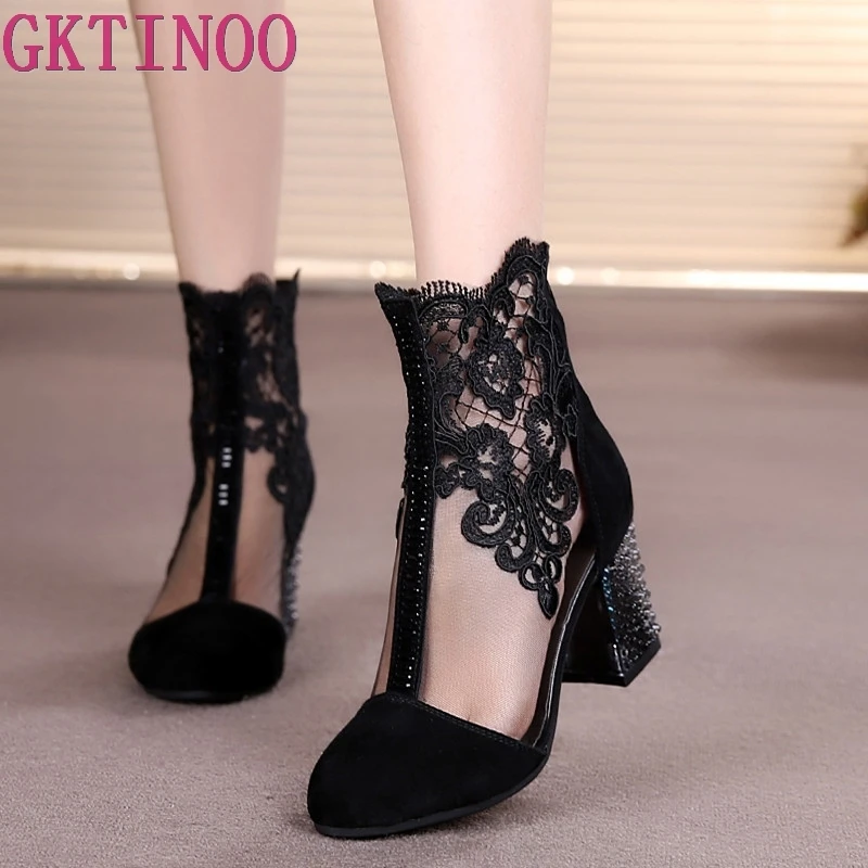 Special Offer GKTINOO obuwie damskie koronkowe oryginalne krowy skórzane wiosenne letnie modne buty wysokie obcasy okrągłe Toe buty ze skórki cielęcej Plus rozmiar Discount 50% Today!