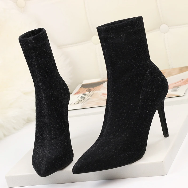 Special Offer SEGGNICE kobiety skarpety buty buty na wysokim obcasie cienkie obcasy botki Sexy kobieta moda 2019 jesień zima kostki cekiny buty skarpety Discount 33% Today!