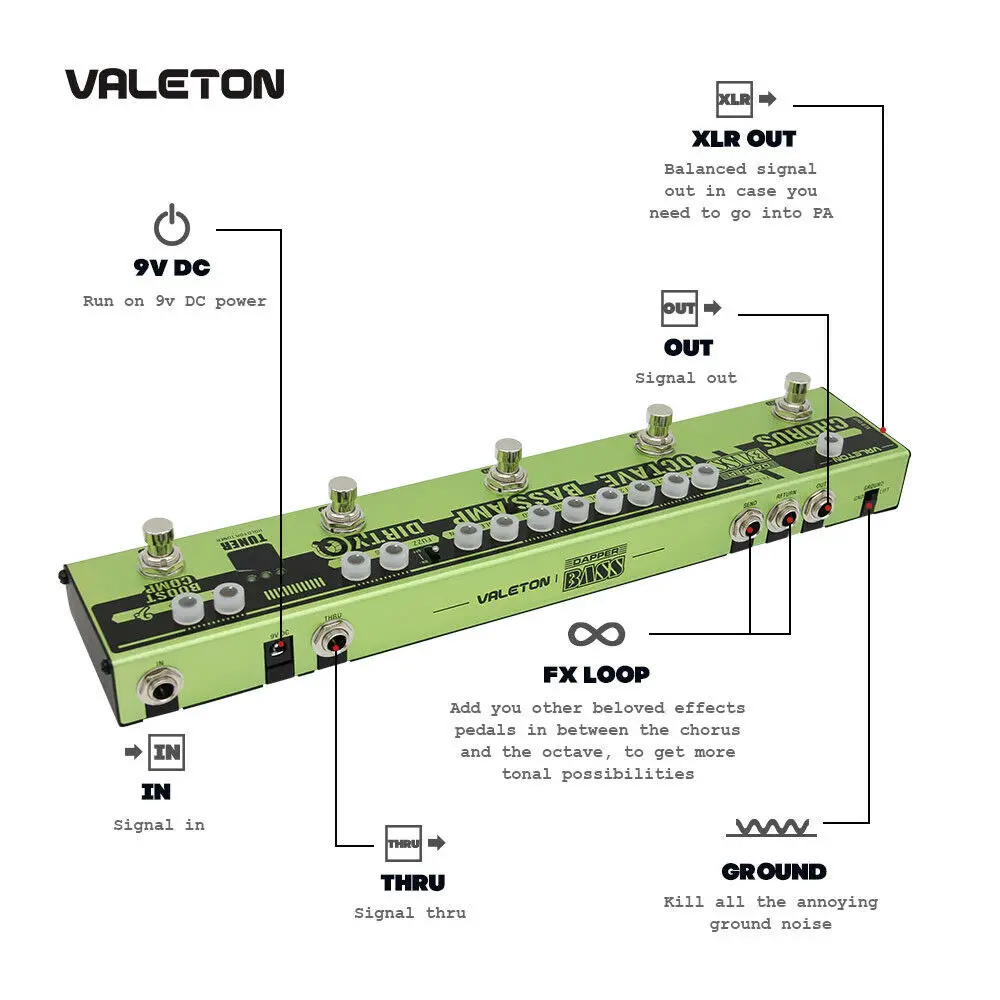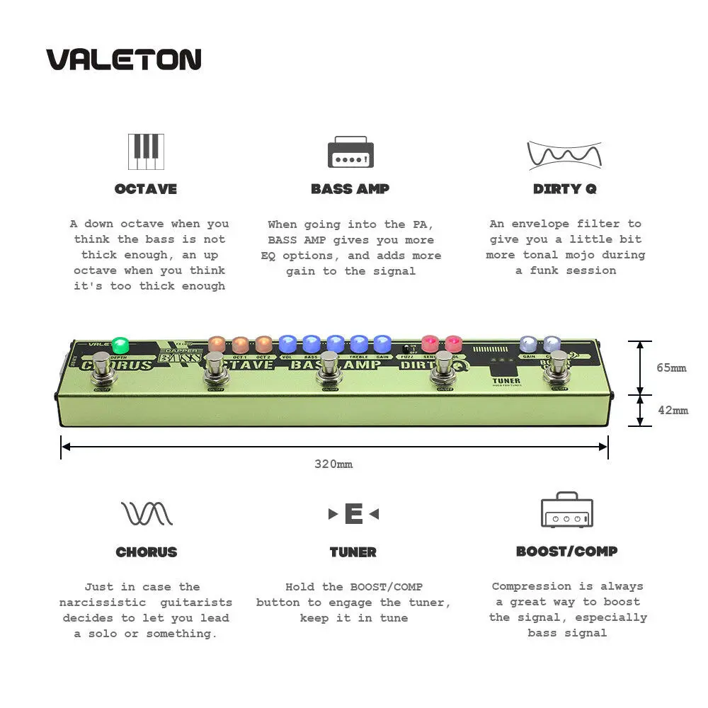 Special Offer Valeton nowy Dapper BASS Multi pedał efektów Strip 6 w 1 Multi Effect Tuner do basu, chór, Octaver, Dirty Q Boost Comp, Tuner VES 2 Discount 0% Today!