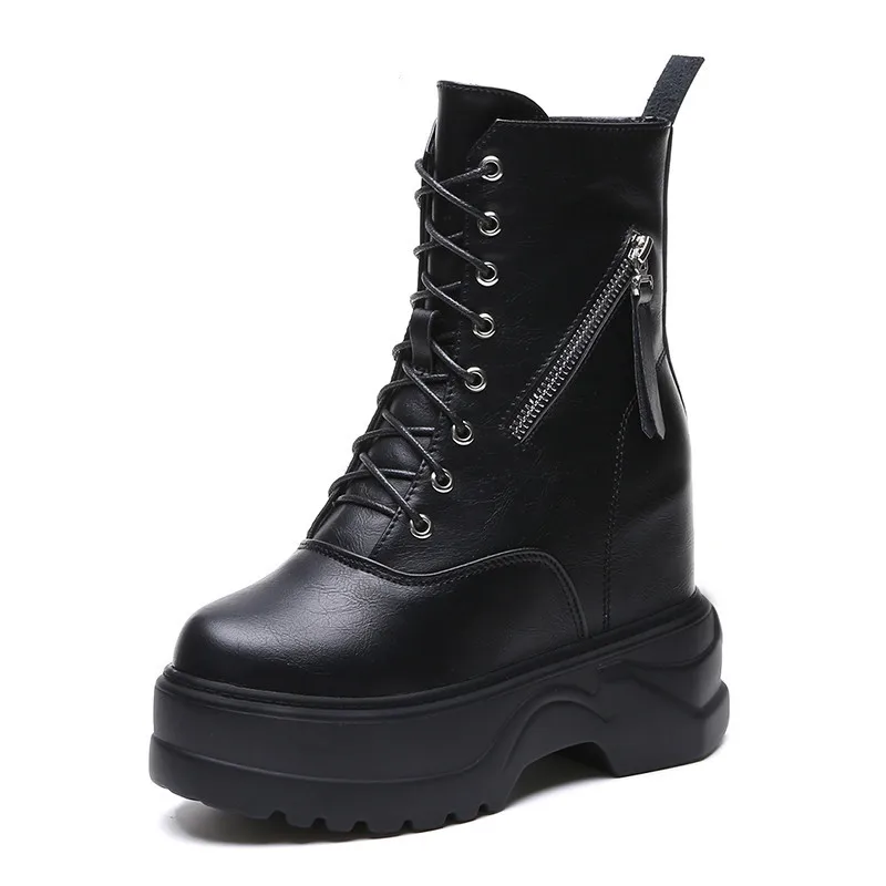 Special Offer 2019 jesień wysokiej buty na platformie 11CM wysokie obcasy kobiety gruba podeszwa buty do kostki skórzane trampki na koturnie utrzymać ciepłe zimowe futerko buty Discount 41% Today!