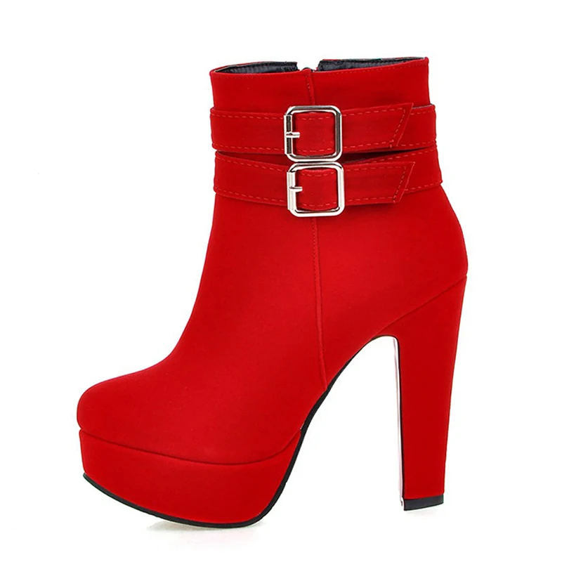Special Offer TAOFFEN rozmiar 30 48 kobiet buty na wysokim obcasie zamek zimowe ciepłe buty z zaokrąglonym czubkiem kobiet kwadratowy obcas platformy obuwie Zapatos Mujer Discount 49% Today!