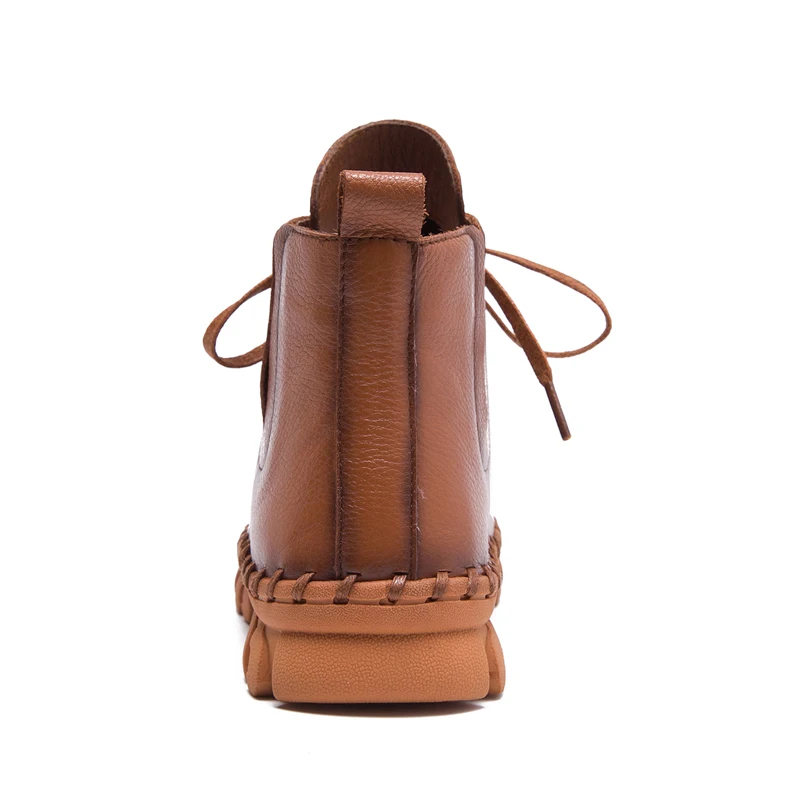 Special Offer Oryginalne skórzane buty damskie buty 2020 jesienne zimowe moda ręcznie robione botki ciepłe miękkie odkryte płaskie buty kobieta Discount 50% Today!