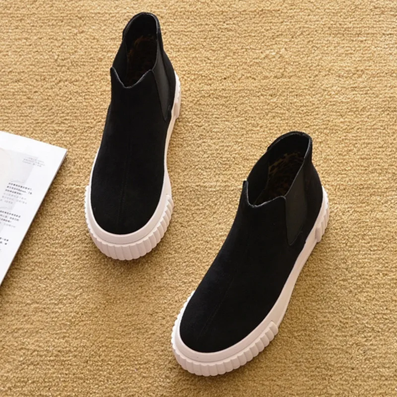 Special Offer Moda jesień kobiety chelsea boots gruba podeszwa Leopard zimowe ciepłe grube pluszowe damskie botki kobiece zamszowe kostki Botas Discount 40% Today!