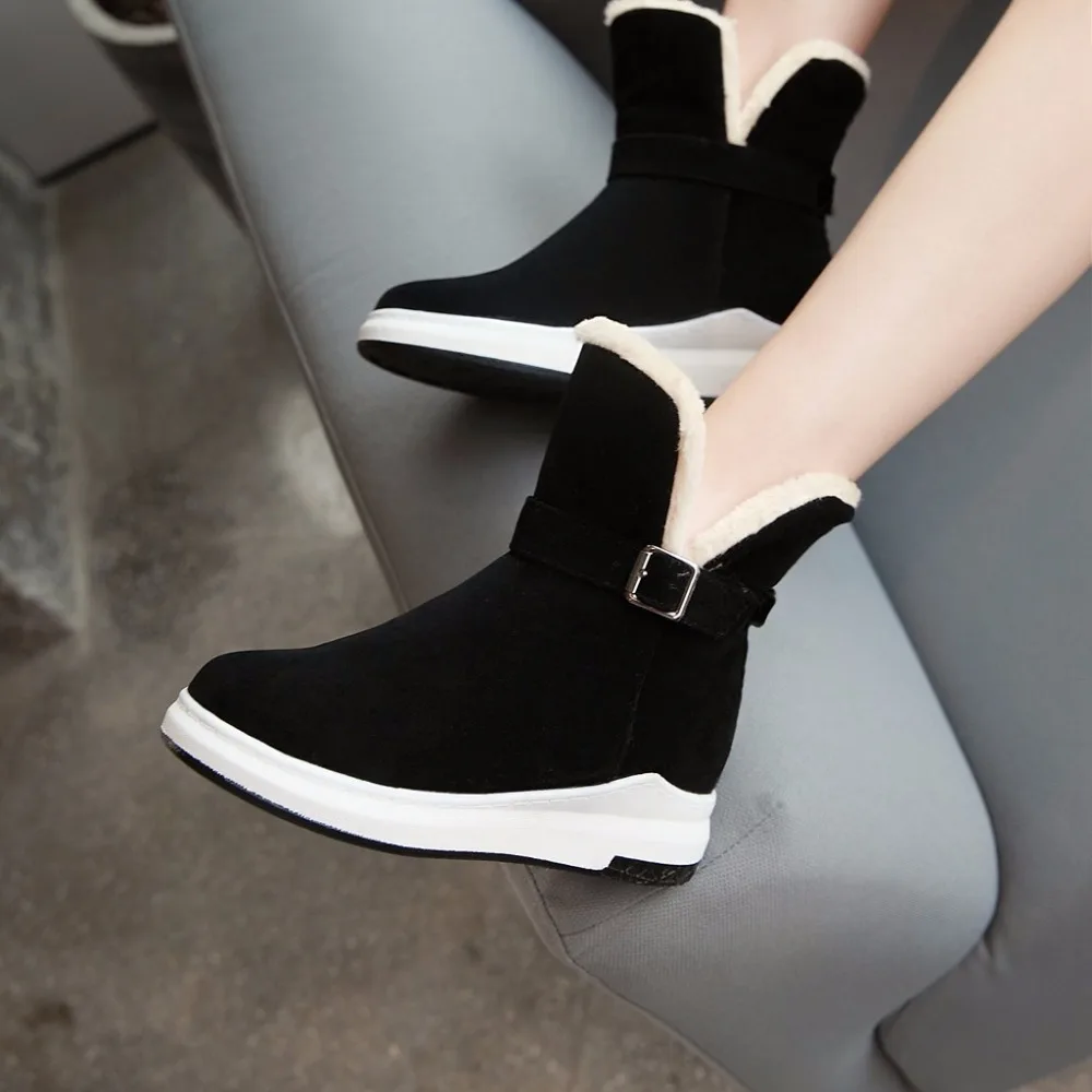 Special Offer Kobiety półbuty zimowe krótki but ciepłe buty płaskie Botas Mujer śnieg buty klamra moda buty z zaokrąglonym czubkiem buty n026 Discount 45% Today!