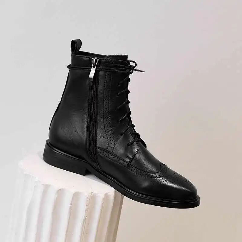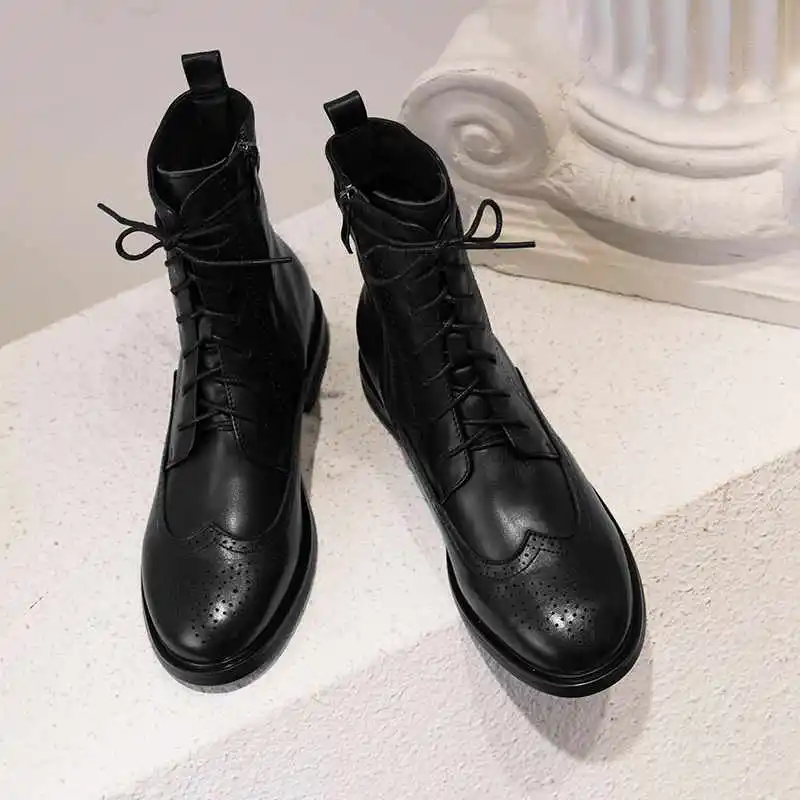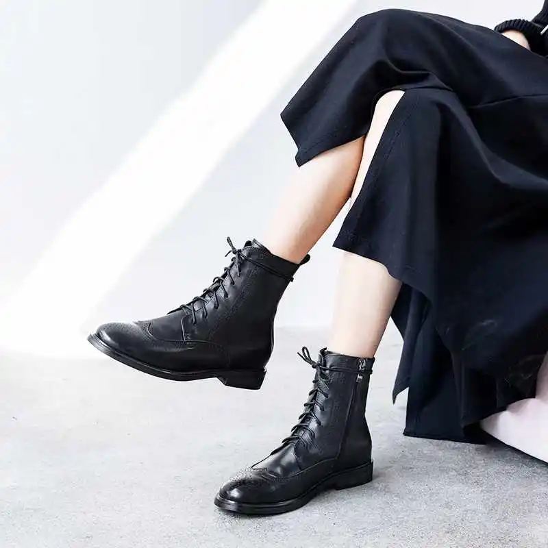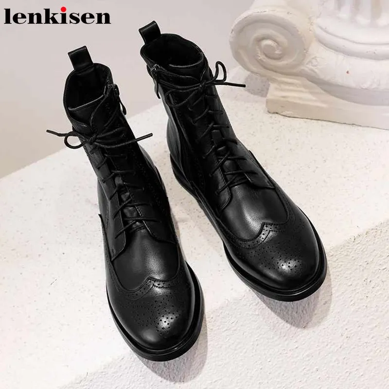 Special Offer Lenkisen brogue rzeźbione brytyjska koronka up buty z prawdziwej skóry okrągłe toe niskie obcasy zimowe wypoczynek utrzymać ciepłe kobiety botki L17 Discount 51% Today!
