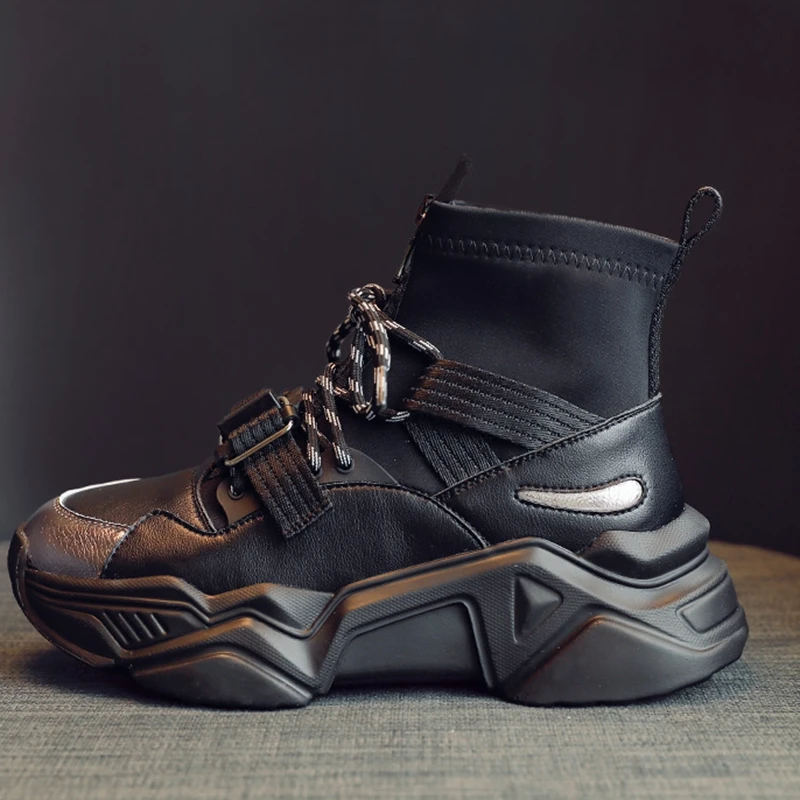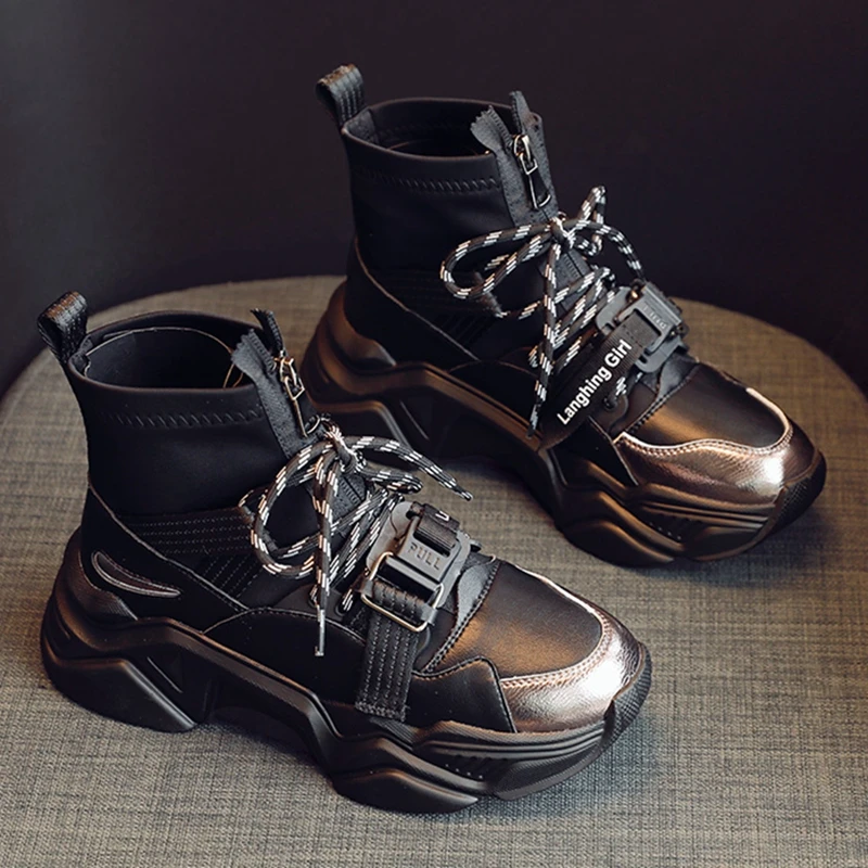 Special Offer SWYIVY kobiece buty zimowe 2019 popularne 6 Cm buty za kostkę platformy trampki czarne buty do kostki ze skóry naturalnej dla buty damskie Discount 45% Today!