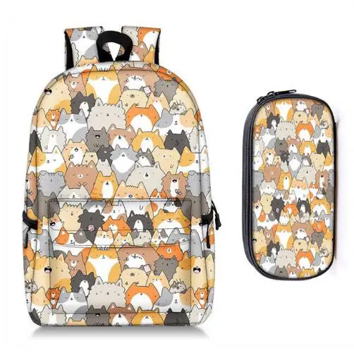 Special Offer Cute kitten koty puppy dogs torba z nadrukiem + piórnik dla chłopca nastolatka dziewczyna dzieci torby szkolne plecak dla dzieci bookbag dla kobiet Discount 0% Today!