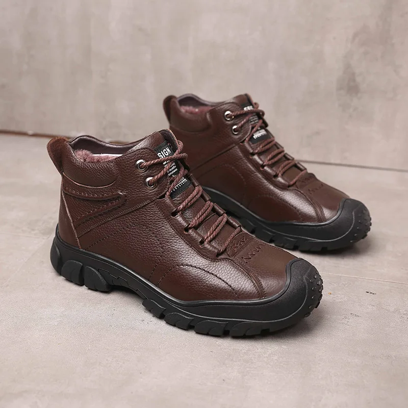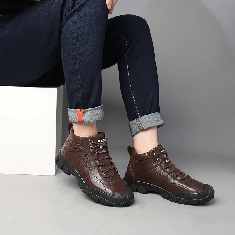Special Offer 100% oryginalne skórzane buty męskie zimowe buty ciepłe pluszowe na mroźna zima mężczyźni botki moda skóra bydlęca męskie botki KA1866 Discount 40% Today!