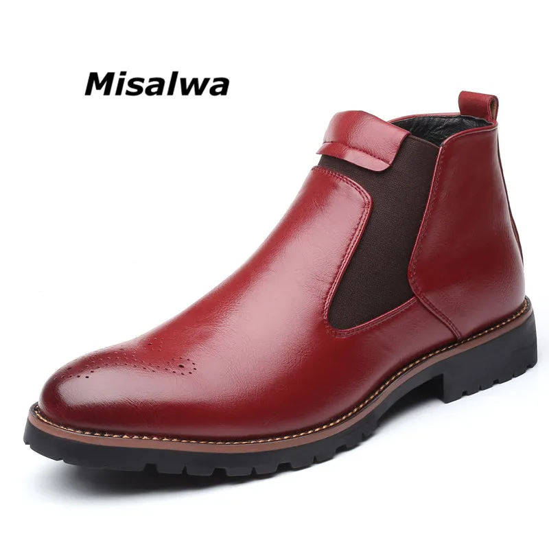 Special Offer Misalwa jesień zima 2019 mężczyzn Chelsea buty czarny czerwony żółty z mikrofibry skórzane akcentem buty Bullock mężczyźni buty w stylu casual duży rozmiar Discount 48% Today!