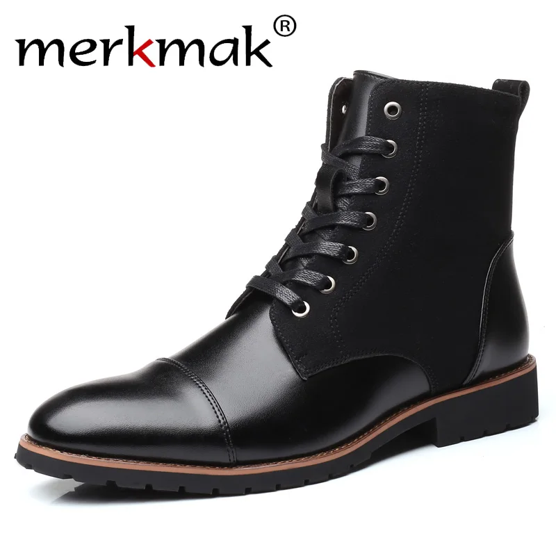 Special Offer Merkmak czarne skórzane buty męskie buty wojskowe wodoodporne jesienne zimowe buty kowbojskie buty casual męskie duże rozmiary 35 46 najnowsze Discount 52% Today!