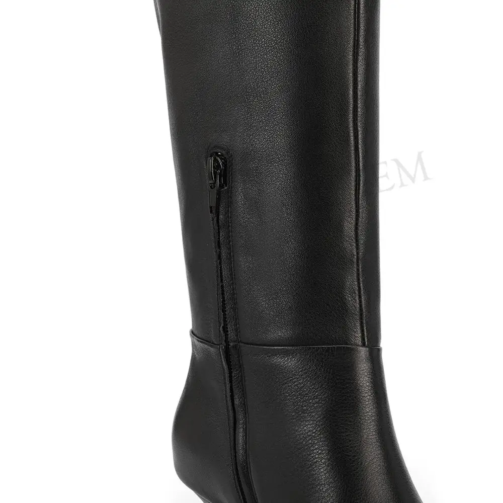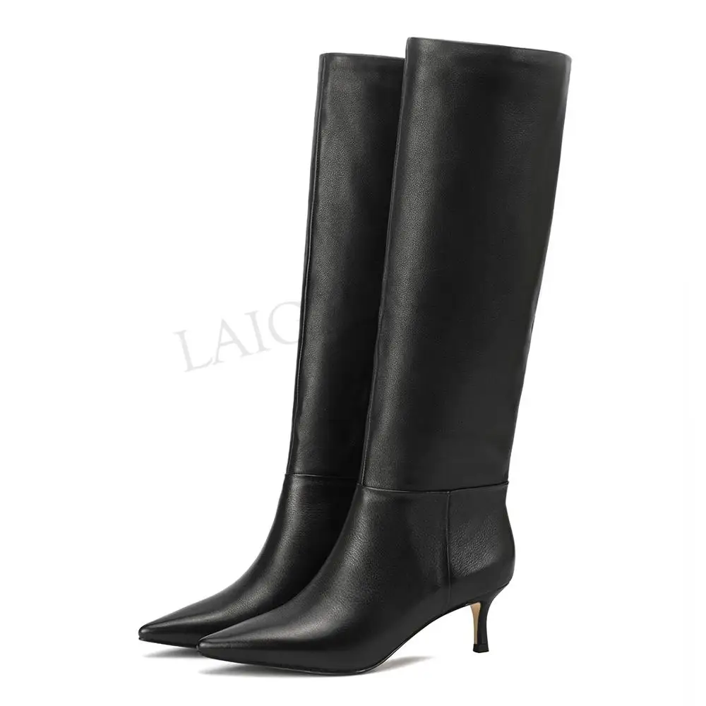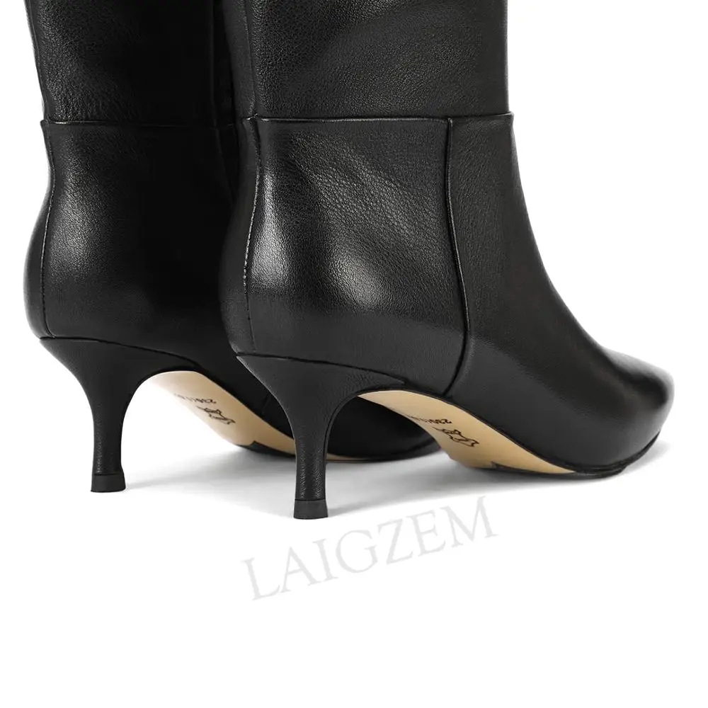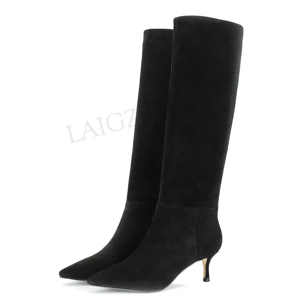 Special Offer LAIGZEM Top Quality kobiety buty do kolan 2020 skóra zamszowe boczne Zip kocie obcasy buty zimowe Botines Mujer rozmiar 34 39 Discount 35% Today!