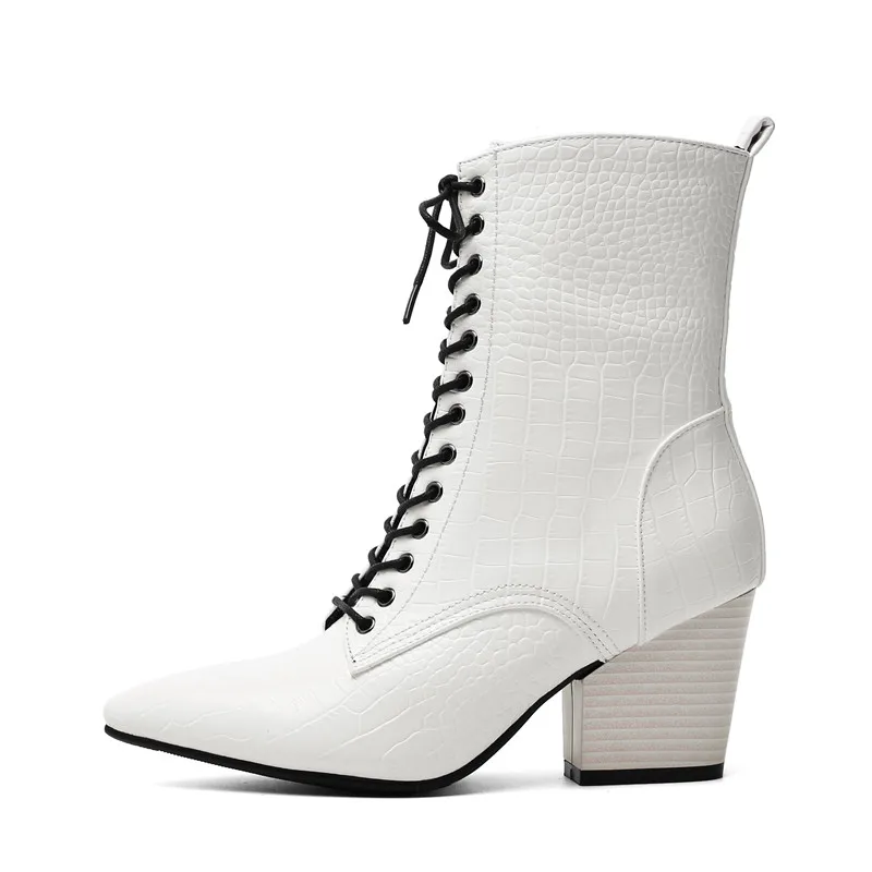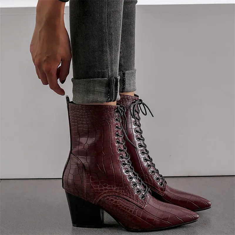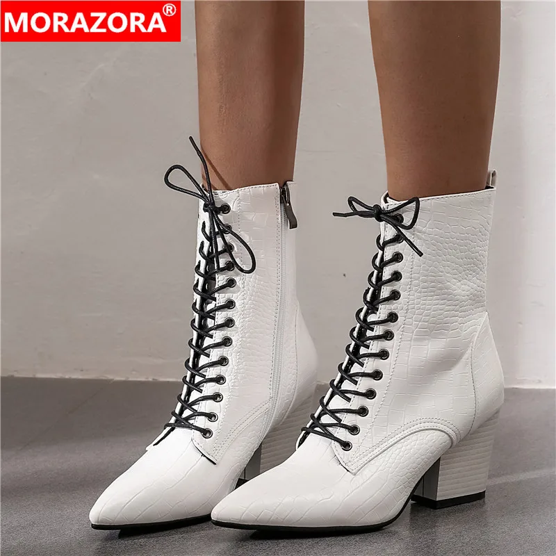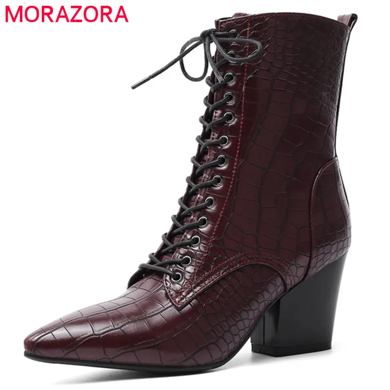 Special Offer MORAZORA 2020 nowych kobiet buty szpiczasty nosek zasznurować buty zimowe jesień vintage wysokie obcasy damskie buty biurowe zachodnie botki Discount 48% Today!