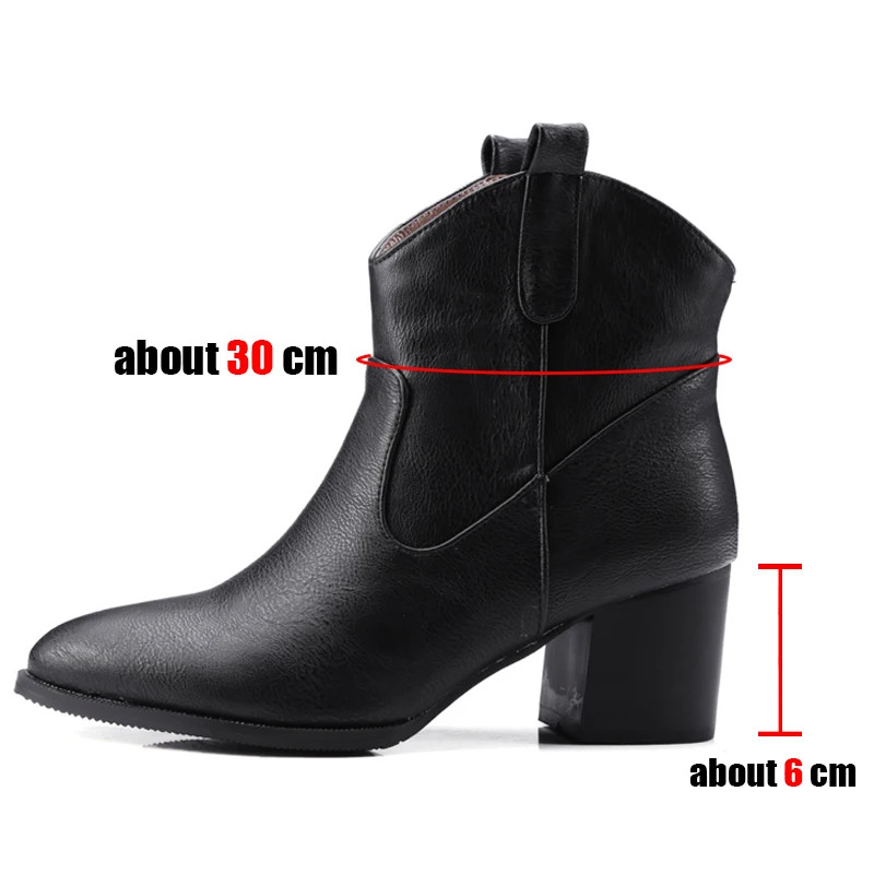 Special Offer SARAIRIS Plus rozmiar 32 48 retro czarny szpiczasty nosek botki damskie zimowe kostki buty zachodnie kobiety 2020 wysokie obcasy buty kobieta Discount 49% Today!