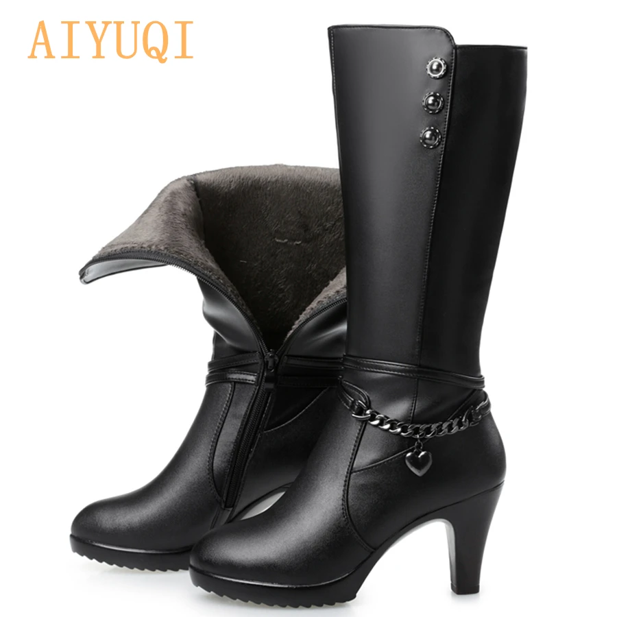 Special Offer AIYUQI buty damskie na wysokim obcasie 2020 buty motocyklowe z prawdziwej skóry grube wełniane ciepłe buty zimowe damskie buty zimowe Discount 49% Today!
