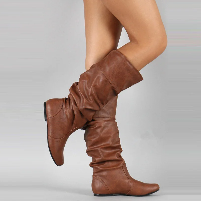 Special Offer SGESVIER Plus rozmiar 34 52 połowy łydki buty wkładka obcasy kobiety plisowane buty kobieta okrągły buty z palcami płaskie buty jesień zima 2020 Discount 50% Today!